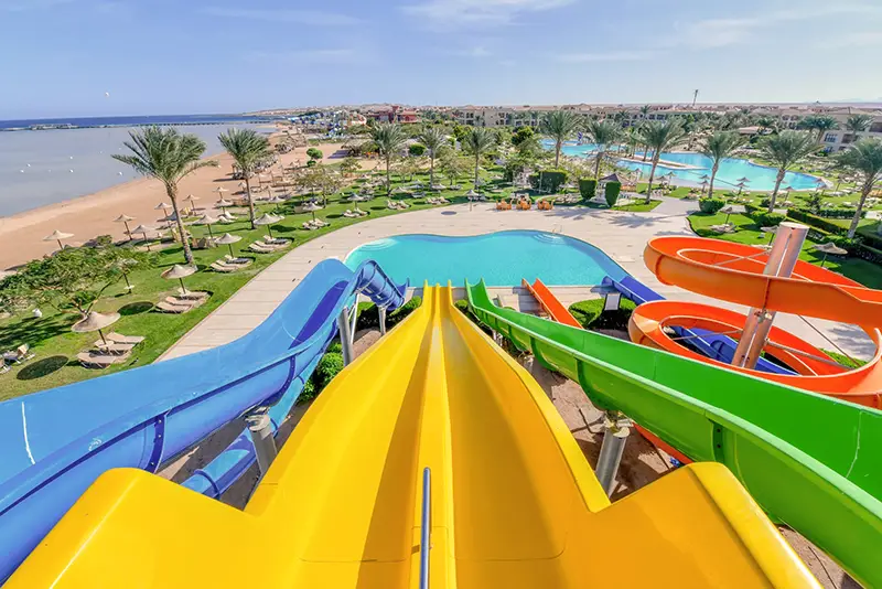 • Aqua-Park: Zahlreiche Wasserrutschen und ein Wasser-Spielplatz.