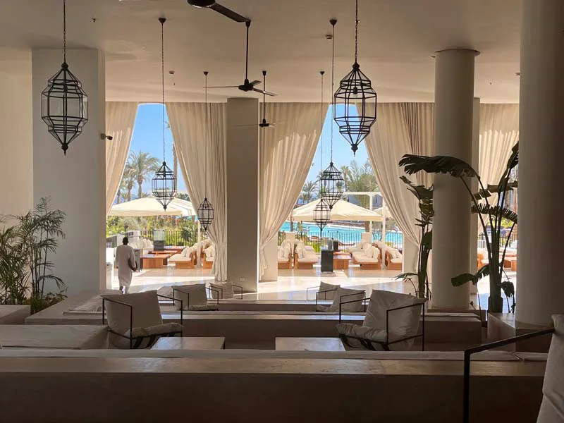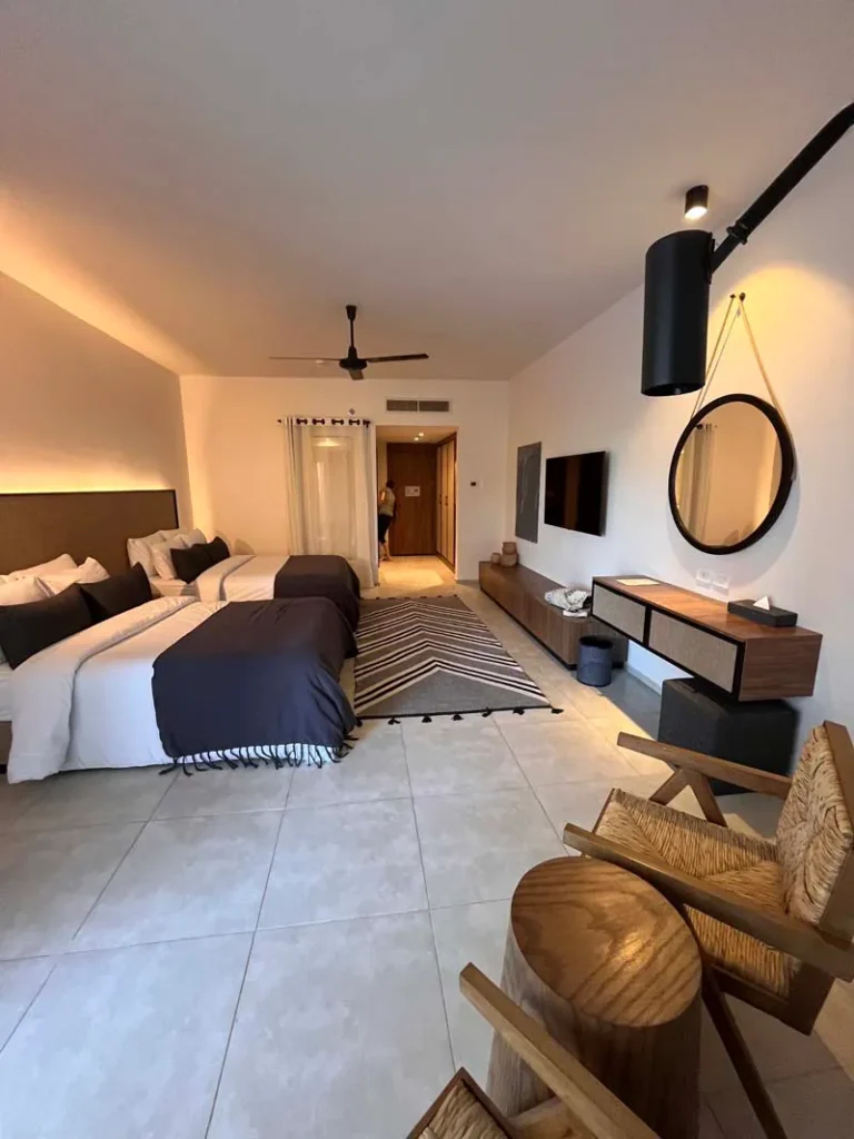 Die Architektur des Serry Beach Resort fasziniert durch ägyptische Einflüsse, klare Linien und offene, luftige Räume mit hellen Farben sowie üppigem Grün – ein Meisterwerk moderner Eleganz, das pure Entspannung ausstrahlt. Gäste rühmen die beeindruckende Ästhetik, die jedes Foto instagramtauglich macht und das Resort in den sozialen Medien viral gehen lässt. Diese visuelle Brillanz, kombiniert mit der Lage direkt am Meer, schafft ein unvergleichliches Ambiente, das Luxus und Natürlichkeit meisterhaft vereint.