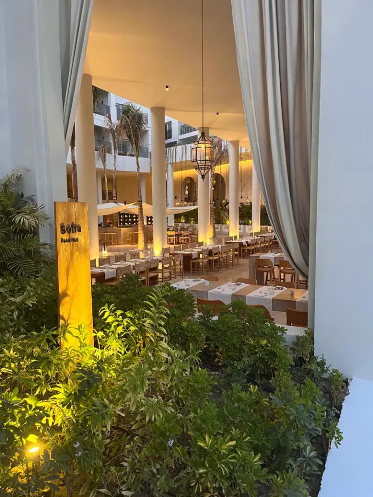 Dieser zentrale Food Hall im Hofstil serviert abwechslungsreiche Buffets mit Live-Cooking-Stationen für Frühstück, Mittag- und Abendessen. Highlights umfassen Steak-Tacos, Quesadillas, Frutti di Mare-Pizza sowie internationale und kinderfreundliche Optionen – ein lebendiges Fest der Vielfalt in natürlicher, grüner Umgebung.